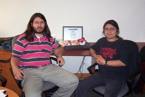 | Description: | Image of two men sitting by a computer with the Firefox message on it |