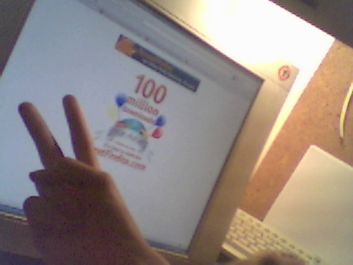 | Description: | Image of a hand making the "V for Victory" in front of a computer screen with the Firefox message on it |