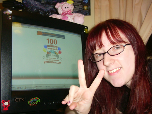 After many attempts I finally got a photo of myself with my computer monitor, which is actually located in a pretty awkward place! Congratulations Firefox.