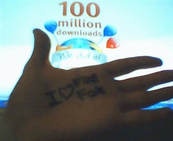 | Description: | Image of a woman's hand with "I 'heart' Firefox" written on it in front of a browser with a computer screen in the background |