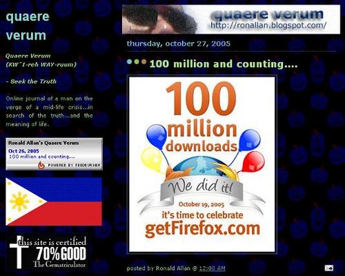 | Description: | Image of a man's blog with the Firefox message prominently displayed |