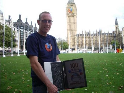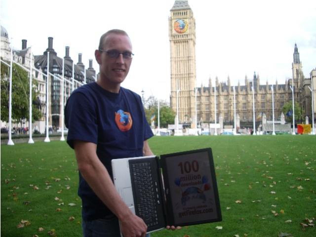 In London we have started measuring time in "Firefox downloads" - the local time is just past 100,000,000. As you can see in the background even Big Ben has switched to Firefox. Congratulations from Thooomas (the photographer) and Tango!