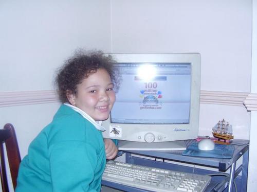 | Description: | Image of a girl next to a computer displaying the 100 Million Downloads message |