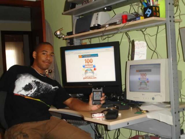 | Description: | Image of a boy sitting at three computers with Firefox images |