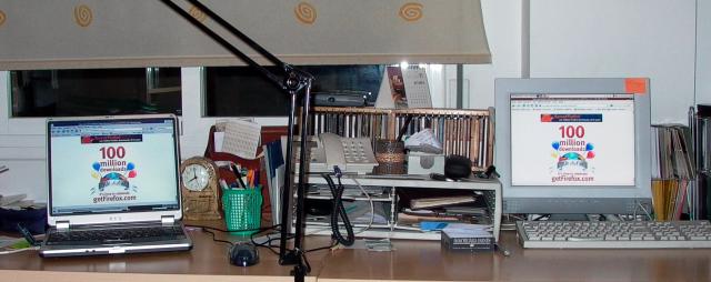 | Description: | Image of two computers bearing the 100 Million Downloads message |