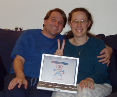 Here's me and my wife celebrating the 100 millionth download of Firefox.