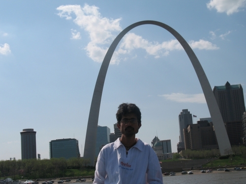 Trip to St. Louis with my Firefox shirt. This is not a Firefox T-Shirt, but my regular Kurta (a kind of shirt). On this my wife has embroider the Firefox logo.